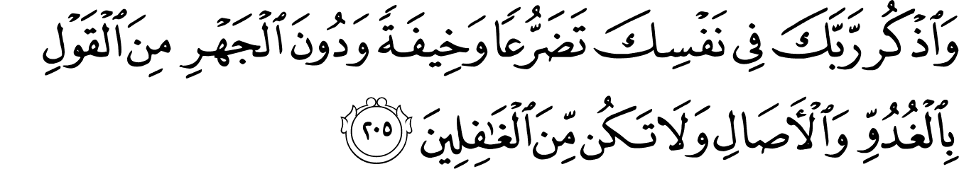 “And remember your Lord within yourself in humility and fear, without being loud in speech – in the mornings and the evenings. And do not be among the heedless” [Surah Al’A’raf; 7:205]