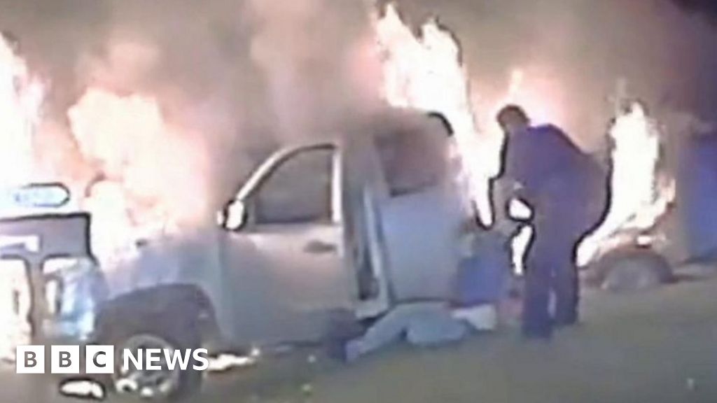 Watch: Police officer drags woman to safety from burning car